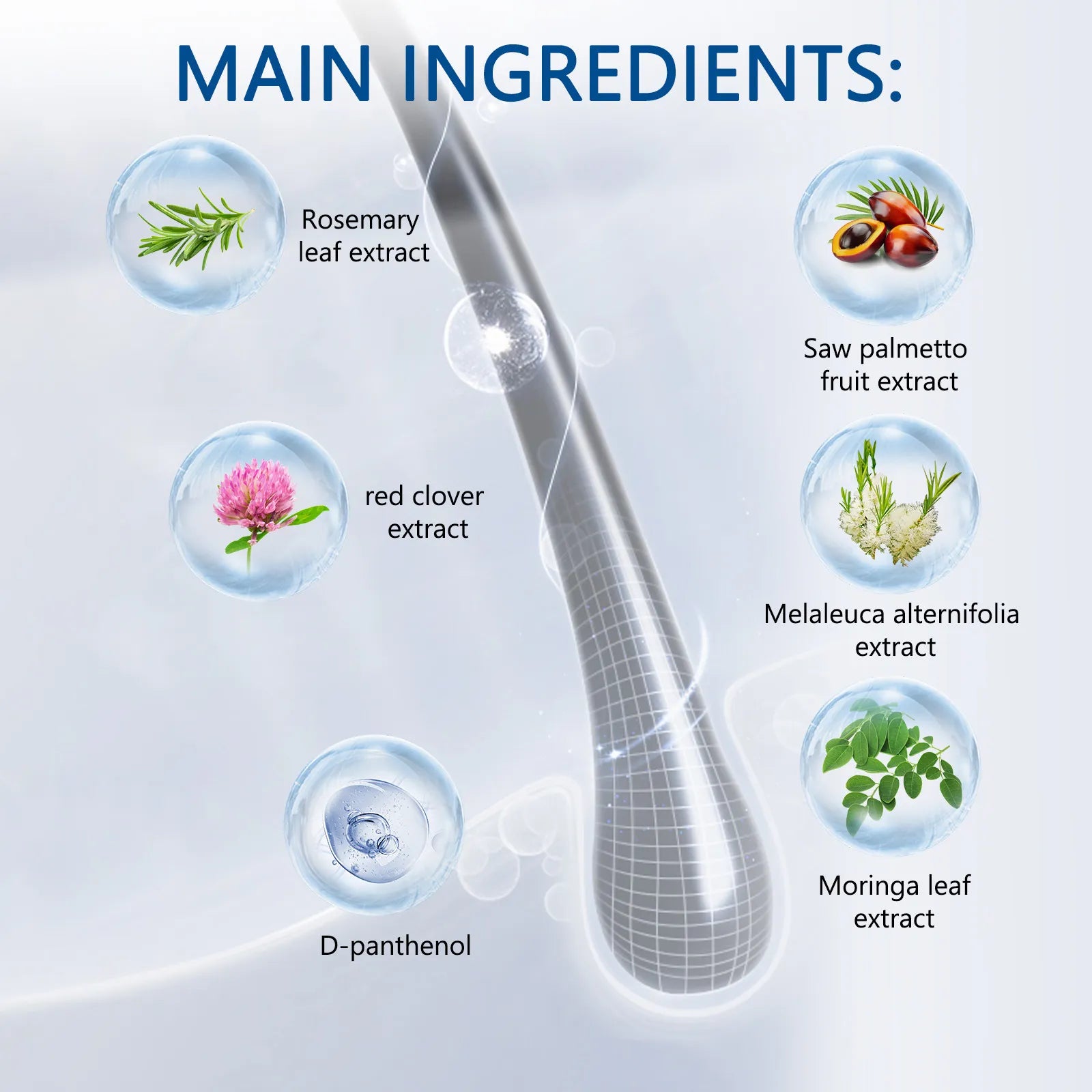 Rosemary Leaf Extract (Rosmarinus officinalis), Saw Palmetto Extract (Serenoa repens), Red Clover Extract (Trifolium pratense), D-Panthenol (Provitamin B5), Tea Tree Oil (Melaleuca alternifolia), Moringa Leaf Extract (Moringa oleifera).