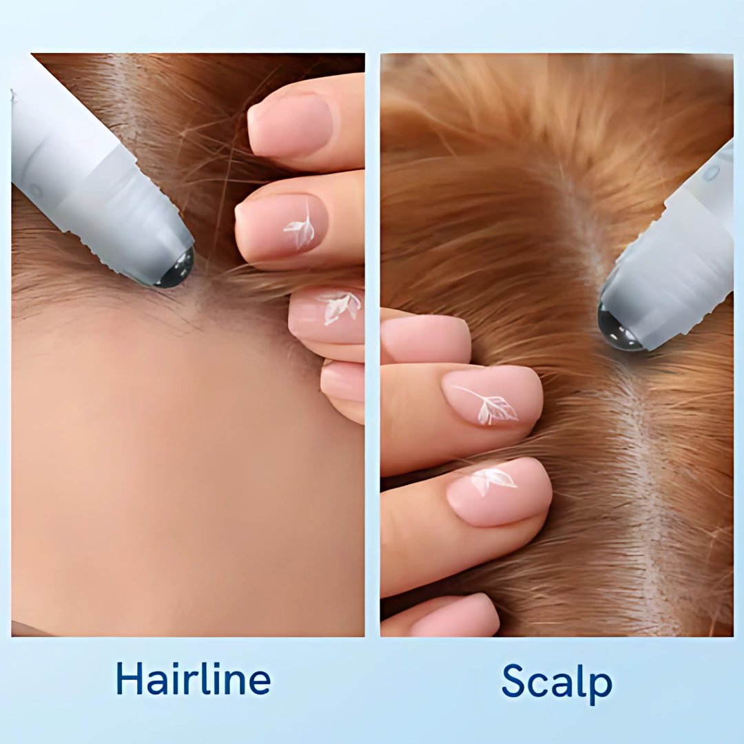 Clinically-proven natural ingredients delivered through precision roll-on technology that massages deep into your scalp—without the mess of drops or the side effects of pills.