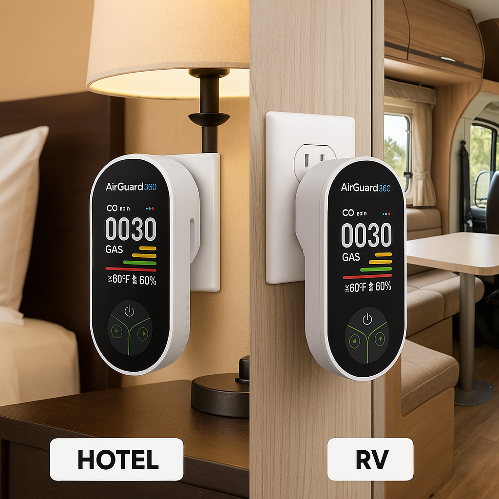 Use it at home, in your RV, or when traveling. The compact plug-and-play design keeps every space safe from carbon monoxide and gas leaks.